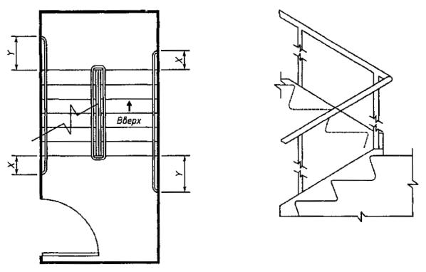 Внутренние поручни на изломе лестницы должны быть всегда непрерывными, как показано на рисунке B.1.