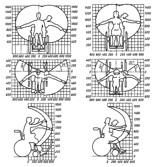 Рисунок А.1 - Зона досягаемости для инвалидов-мужчин в кресле-коляске