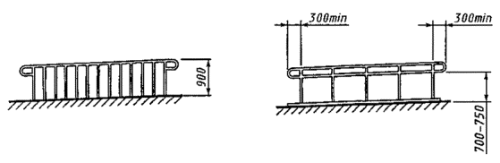 5.6.4 Поручни рампы должны быть расположены на высоте от 750 до 900 мм над поверхностью рампы.