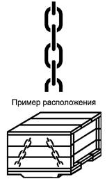 Указывает место расположения канатов или цепей для подъема груза |