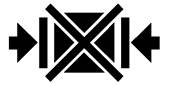 Место центра тяжести. Примечание - Пример расположения знака указывает место тяжести груза. Знак наносят, если центр тяжести не совпадает с геометрическим центром тяжести |
