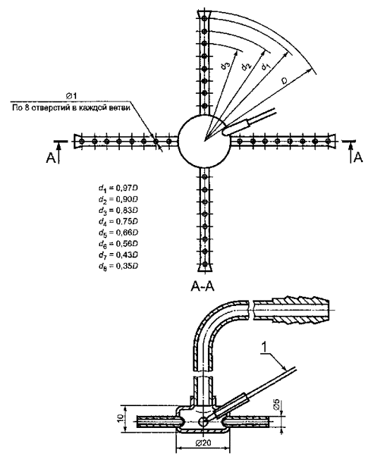 - дроссель: Устройство с одним или несколькими отверстиями, установленное на пути газового потока между входным соединением газа и горелкой для создания перепада и уменьшения давления газа в горелке до заданных давления и расхода подводимого газа.