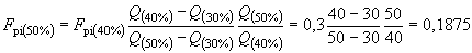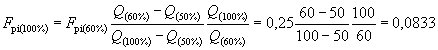 - меньшая нагрузка: Fpi (50 %) = Fpi (60 %) - Fpi (100 %) = 0,25 - 0,0833 = 0,1667.