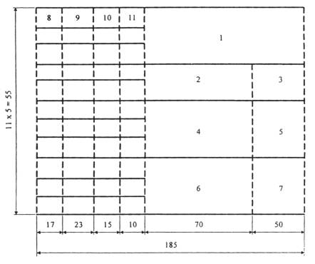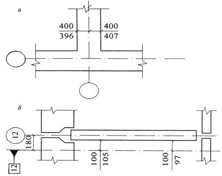- действительными расстояниями от граней элементов до разбиваемых в натуре параллелей осям (базовых осей по ГОСТ 2.308) с указанием привязочных размеров последних к координационным осям.