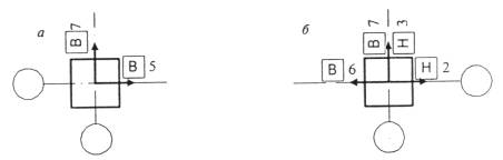 4.6.5 Действительные отклонения осей элементов от разбивочных осей на планах показываются стрелками, направленными в сторону отклонения, и расположенным рядом числовым значением отклонения. При этом перед действительными числовыми значениями отклонений помещается в прямоугольной рамке буква "В" для верхнего сечения или буква "Н" для нижнего сечения элемента (рисунок 3).