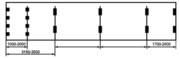 Если контейнеры типа 1СС или 1С имеют две пары вилочных проемов, то рядом с проемами внутренней пары следует по требованию заказчика наносить маркировку, ограничивающую использование этой пары проемов.