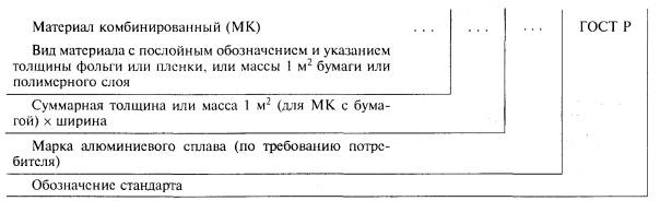 Ф/Б/ПЭ - фольга, кашированная бумагой и соединенная со стороны бумаги с полиэтиленовой пленкой;