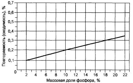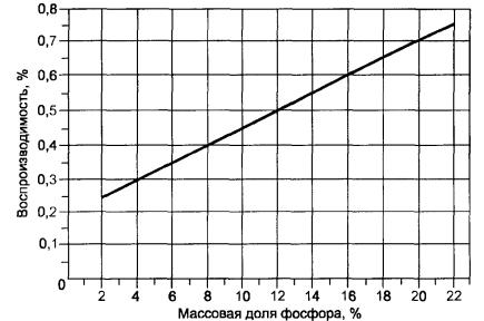 Если необходимо, повторно проводят регулировку гальванометра на коэффициент пропускания, равный 100,0 %, и получают не менее трех показаний на образцах. Расхождения не должны превышать 0,2 %. Для определения массовой доли фосфора по калибровочному графику используют среднеарифметическое значение этих показаний.