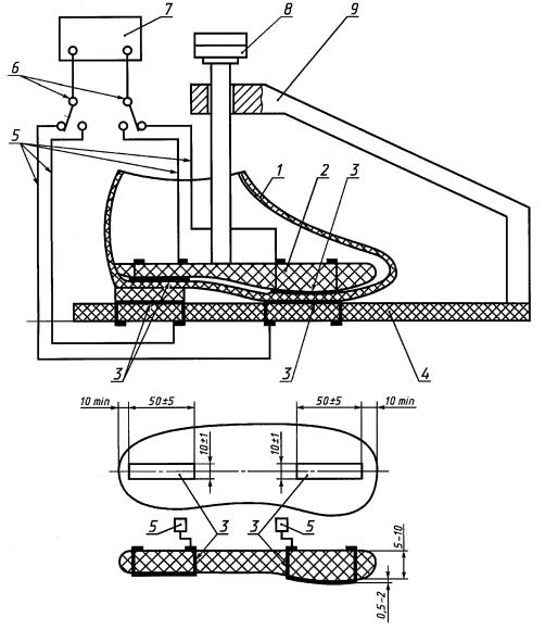 4.10 Электрическое сопротивление между подпятником и ходовой стороной антиэлектростатической специальной обуви согласно ГОСТ 12.4.124 должно быть от 106до 108Ом.