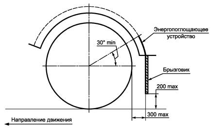 4.4.3.3 Нижний край устройства для уменьшения разбрызгивания должен находиться на расстоянии не более 200 мм от опорной поверхности шины.
