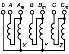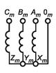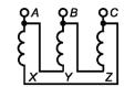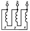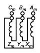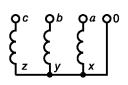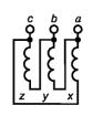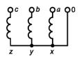 Рисунок Ж.5 - Маркировка трехфазного трехобмоточного трансформатора (Yн/Yн/D-0-5)