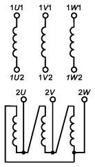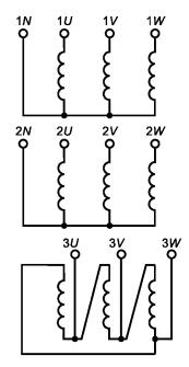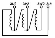 Линейные выводы обмотки трехфазного силового трансформатора следует обозначать буквами U, V, W, которые помещают перед цифрами, приведенными в Ж.2. Если необходимо, допускается помещать эти буквы также перед цифрами, приведенными в Ж.5 и Ж.6.