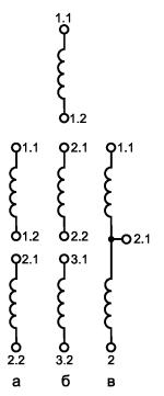 Для автотрансформаторов, у которых две обмотки имеют общий конец, этот конец следует маркировать цифрой 2 (см. рисунок Ж.2в).