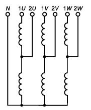 Если обмотки фазы состоят из нескольких частей, которые могут быть соединены последовательно или параллельно, то концы этих частей следует обозначать цифрами 1, 2, 3, 4 ..., при этом линейные или нейтральные концы обмоток фазы маркируют цифрами 1 и 2 в соответствии с требованиями Ж.2.