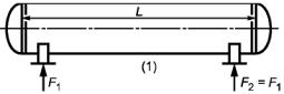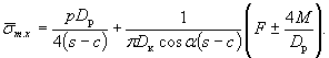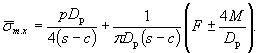 F - расчетное осевое растягивающее или сжимающее усилие (сжимающее усилие со знаком минус), действующее на полную площадь сечения обечайки в направлении оси цилиндрической или конической обечайки (без учета нагрузки, возникающей от внутреннего избыточного или наружного давления), Н;