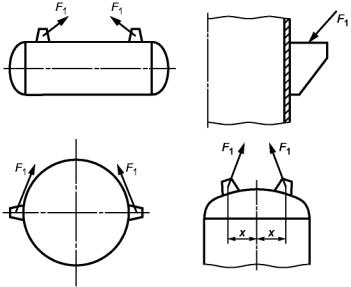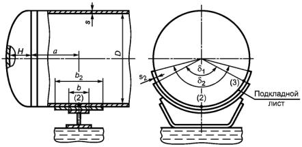 8.2.4. К торосферическим днищам опорные стойки должны быть присоединены в области сферического сегмента, а к эллиптическим днищам - в области 0 < x < 0,4D.