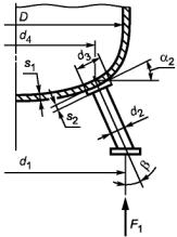 где d4 - диаметр сечения, проходящего через середину линии контакта опоры с днищем, вычисляют по формуле