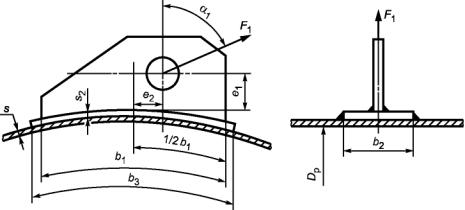 e1 - расстояние между точкой приложения усилия и обечайкой или подкладным листом, мм;