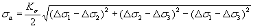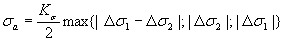 Для плоского напряженного состояния при главных напряжениях Ds1 и Ds2 (Ds3 = 0) амплитуда напряжений равна