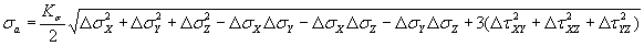 DsX; DsY; DsZ; DtXY; DtXZ; DtYZ - размахи составляющих напряжений, МПа;