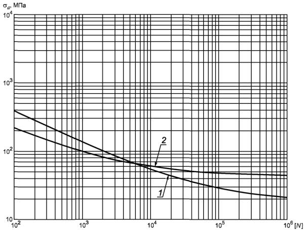 8.2 Допускаемое число циклов нагружения определяют по графикам, приведенным на рисунках 2 - 7, или вычисляют по формуле