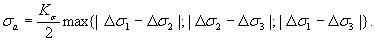 Ds1; Ds2; Ds3 - размахи главных напряжений, МПа.