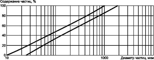 для повышения точности определения эффективного размера пор следует использовать гранулированный материал с d20≤ О90 ≤ d80; диапазон применения гранулированного материала с размером пор О90 приведен на рисунке 2.
