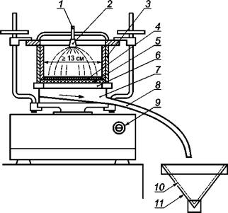 7.6 Пульверизатор должен обеспечивать равномерное распределение воды по всей поверхности пробы. Расход воды регулируют таким образом, чтобы частицы были полностью увлажнены, подъем уровня воды над уровнем гранулированного материала недопустим. Недопустимо застаивание воды над пробой. Расход воды должен сохраняться во время всего процесса промывки.