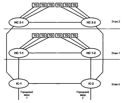 Рисунок 2. Пример топологического расположения элементов и подсистемСКС в здании
