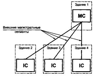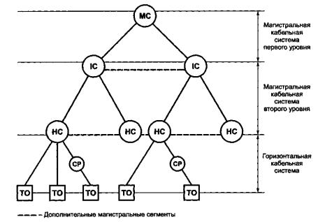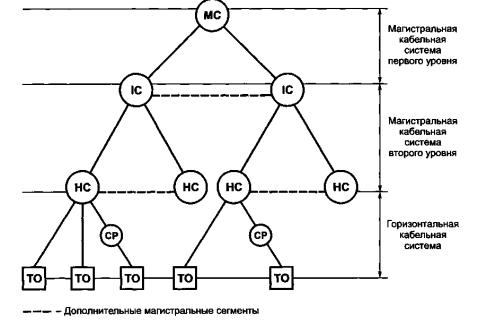 Магистральнаякабельная подсистема первого уровня может также соединять между собойпромежуточные кроссы. Такие соединения рассматриваются только в качестве дополненийк основной топологии системы типа "звезда".