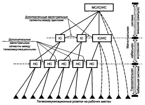 Подсистемы, будучисоединены вместе, формируют универсальную телекоммуникационную кабельнуюсистему с порядком подчинения, показанным на рисунке 3.