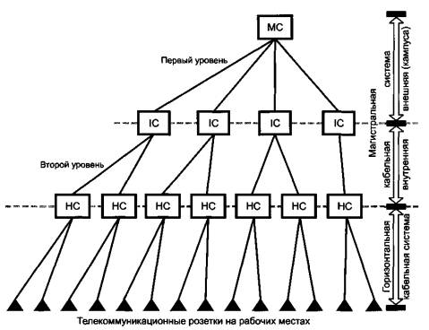- магистральнойкабельной подсистемы второго уровня;