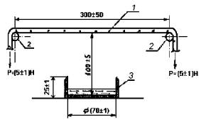 1 - контрольный груз; 2 - испытываемый образец; 3 - опора