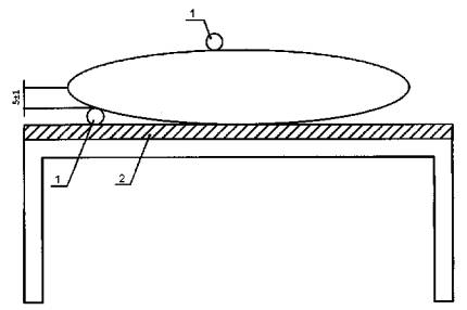 4.4.20 При испытании подушек и пуховых одеял образец помещают на испытательный стенд, а газовую горелку кладут на плоскую верхнюю поверхность образца. При проведении повторного испытания газовую горелку располагают горизонтально на стыке образца и подложки (см. рисунок 4). Всего проводят пять испытаний.