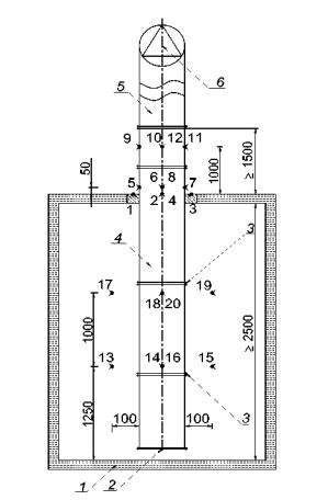 Рисунок А.2 Схема размещения вертикальных воздуховодов на испытательном стенде