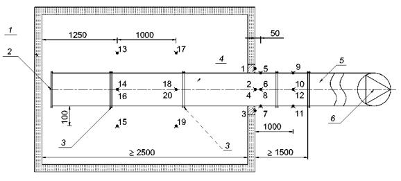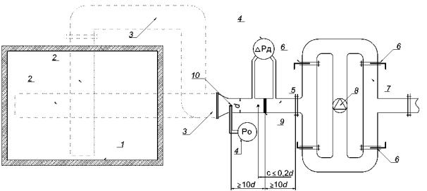 4 - испытываемый образец воздуховода (с отверстием или без него); 5 -