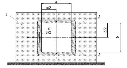 размеры поперечного сечения воздуховода; с - толщина заделки