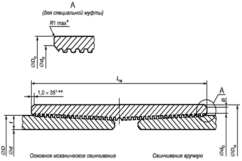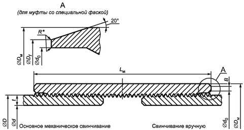 Для указанных типов резьбовых соединений настоящий стандарт устанавливает технические требования к муфтам, заготовкам для соединительных деталей и требования к защите резьбы. Дополнительные требования, которые по выбору потребителя могут быть согласованы для соединения LC с повышенной герметичностью, приведены в А.10 SR22 приложения А.