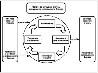 Жизненный цикл непрерывности бизнеса - это постоянная деятельность организации в соответствии с программой обеспечения непрерывности бизнеса. |