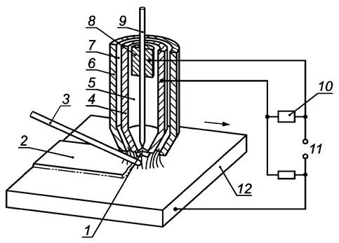 В случае твердого тела, жидкости или газа решающим фактором является их энтальпия. При электрическом разряде и прохождении электрического тока энергия переносится движущимися заряженными частицами в зону сварки. В случае электрического разряда это происходит с помощью плазмы или искр, а в случае прохождения тока - за счет электрического нагрева, при этом ток возникает благодаря индукции или протекает за счет электропроводности.