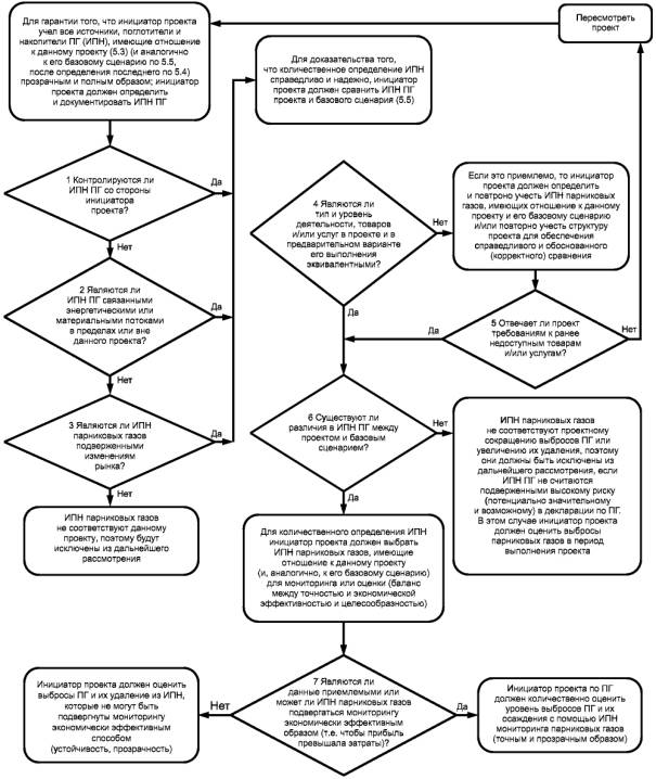 В общем случае базовый сценарий определяют на основе оценки альтернативных сценариев. Для проекта и базового сценария количественная оценка, мониторинг и отчетность по выбросам, удалению и/или хранению ПГ источниками, поглотителями и накопителями основывается на процедурах, разработанных инициатором проекта или принятых соответствующими органами.