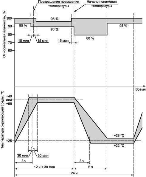 Настоящее испытание состоит из одного или нескольких циклов, во время которых поддерживают высокую относительную влажность.