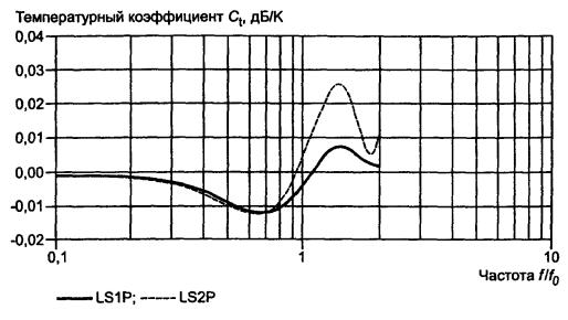 Значение температурного коэффициента в диапазоне низких частот обычно находится в пределах ± 0,005 дБ/К для микрофонов типов LS1P и LS2P.