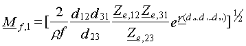 Предполагают, что два микрофона акустически связаны в свободном поле. Используя один из них как источник звука, а другой как приемник звука, измеряют электрический передаточный импеданс. Если акустический передаточный импеданс такой системы известен, то можно найти произведение чувствительностей по свободному полю двух связанных микрофонов. Используя парные комбинации микрофонов (1), (2) и (3), получают три независимых произведения, из которых можно вывести уравнение чувствительности по свободному полю каждого из трех микрофонов.