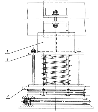 1 - скользящая хомутовая опора; 2 - пружинный блок; 4 - двухрядный катковый блок