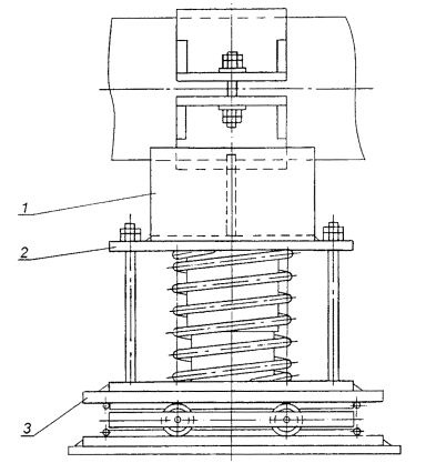 1 - скользящая хомутовая опора; 2 - пружинный блок; 3 - катковый направляющий блок