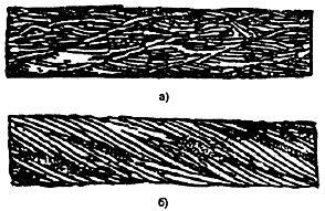 а - в одной пряди; б - в нескольких прядях
