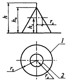 Рис. 11 (к п. 7.4.1). Схема зоны защиты одиночного тросового молниеотвода: