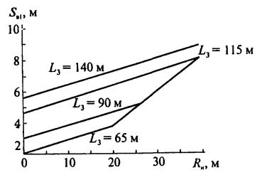 Рис. 12 (к п. 7.5.1). Схема зоны защиты двойного тросового молниеотвода: