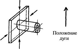 Рис. 12. Нижнее положение при горизонтальном расположении оси трубы, привариваемой с поворотом